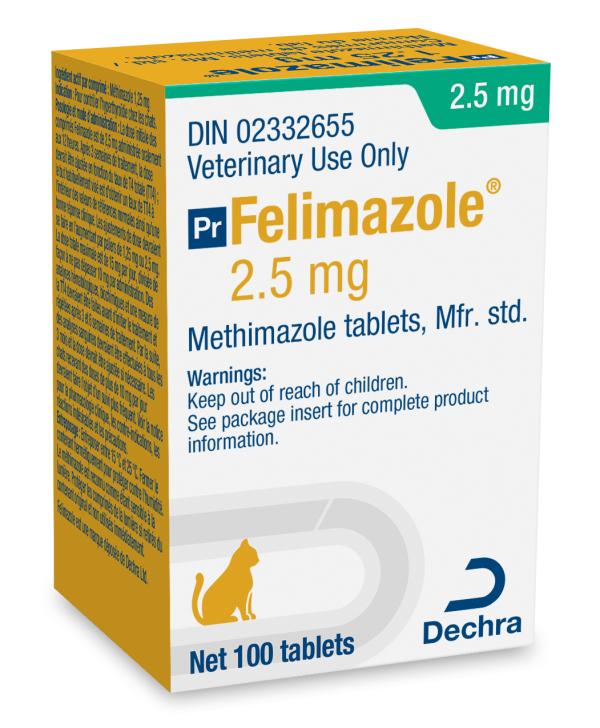 Its available as 25 mg and 5 mg tablets. Felimazole is a treatment for feline hyperthyroidism. Datasheet Company Info.